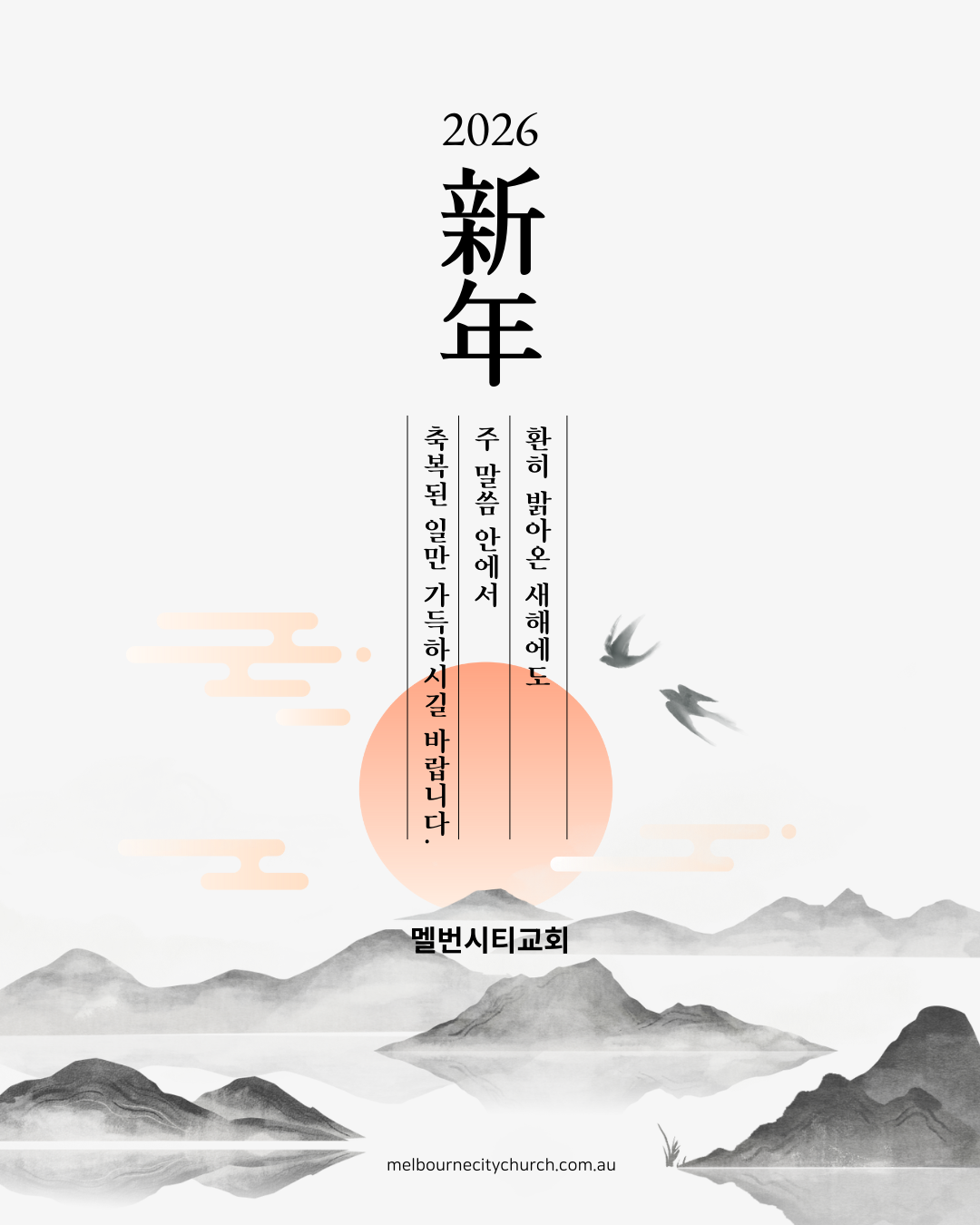 살아계신 우리 하나님의 기적을 누리며 살아가는 2026년 새해가 되시기를 간절히 축원합니다.
