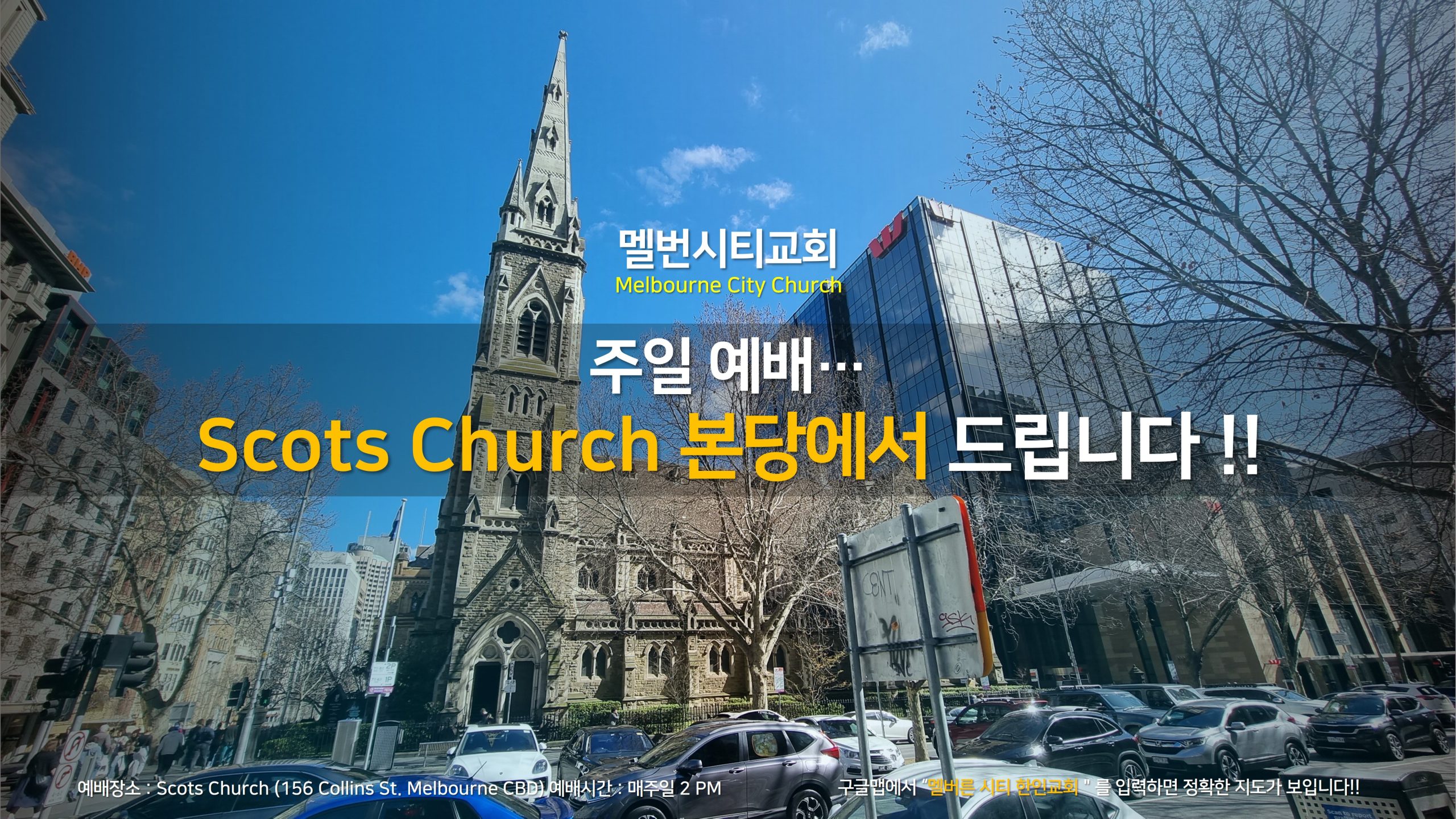 구글맵에서 “멜버른 시티 한인교회”를 입력하면 정확한 지도가 보입니다.